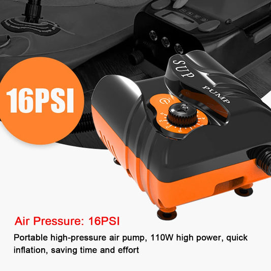 16PSI High-Pressure Portable Electric Air Pump - 110W Mini Tire Inflator for Inflatable Boards, Pools, and Boats